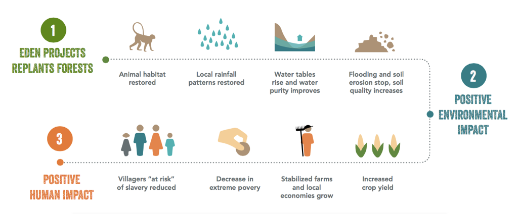 Spruse Essentials is proud to be a planting partner of Eden Reforestation Projects. Eden Reforestation Projects has become a model for environmental restoration and land management, while at the same time lifting thousands of people out of extreme poverty. Over the past 15 years, Eden has planted over 333 million trees in 8 countries, providing over 3 million workdays to thousands of impoverished villagers. The trees provide a habitat for animals, purify water sources, restore ocean health, control flooding and erosion, and help to replenish the soil with nutrients needed for farming.